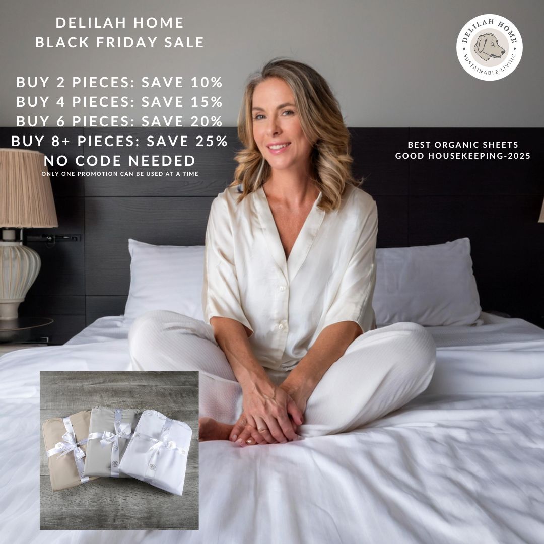When you choose Delilah Home, you’re choosing award-winning organic sheets and sustainable home textiles designed for comfort, durability, and long-term wellness. Rest easy knowing you’re experiencing the very best in sustainable luxury bedding.